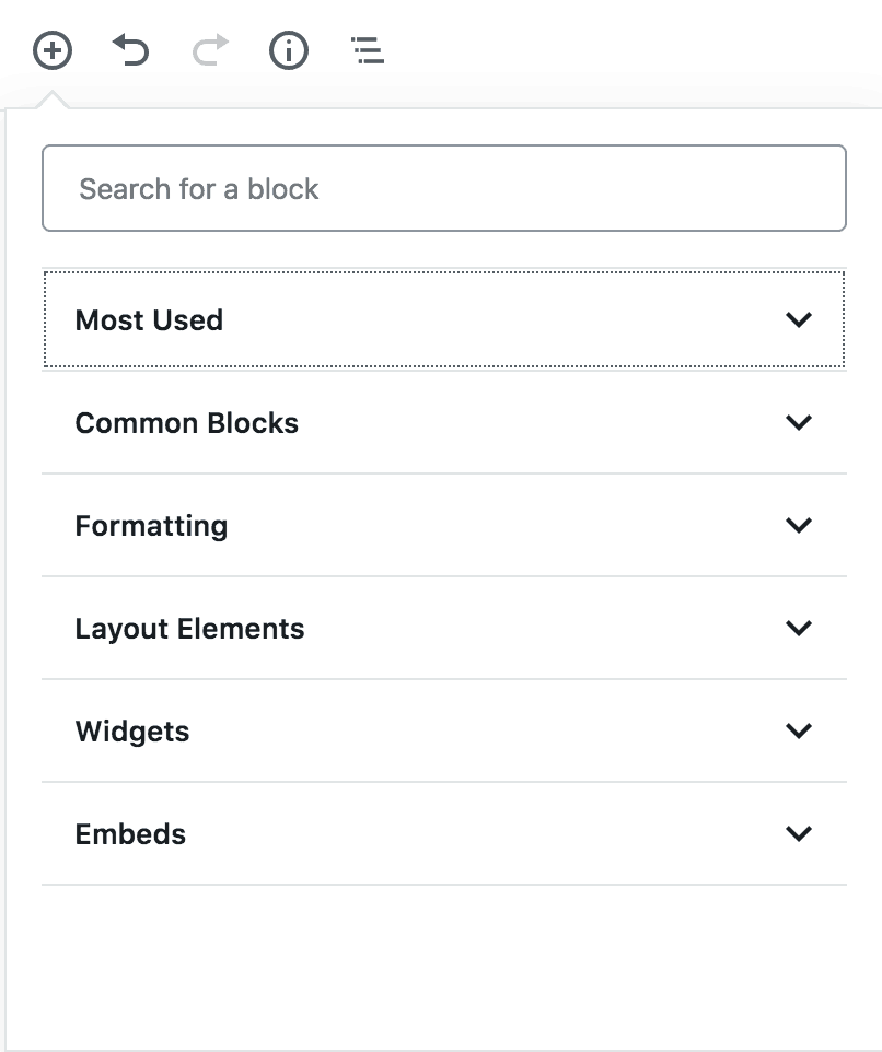 - Numerous categories to organize the new blocks. Developers will be able to add more to this list