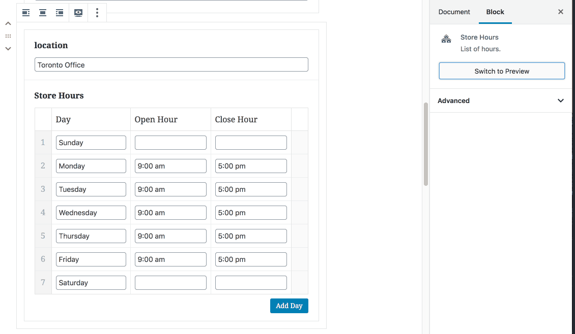 - Edit content in place with Custom Blocks (Here using and ACF repeater)