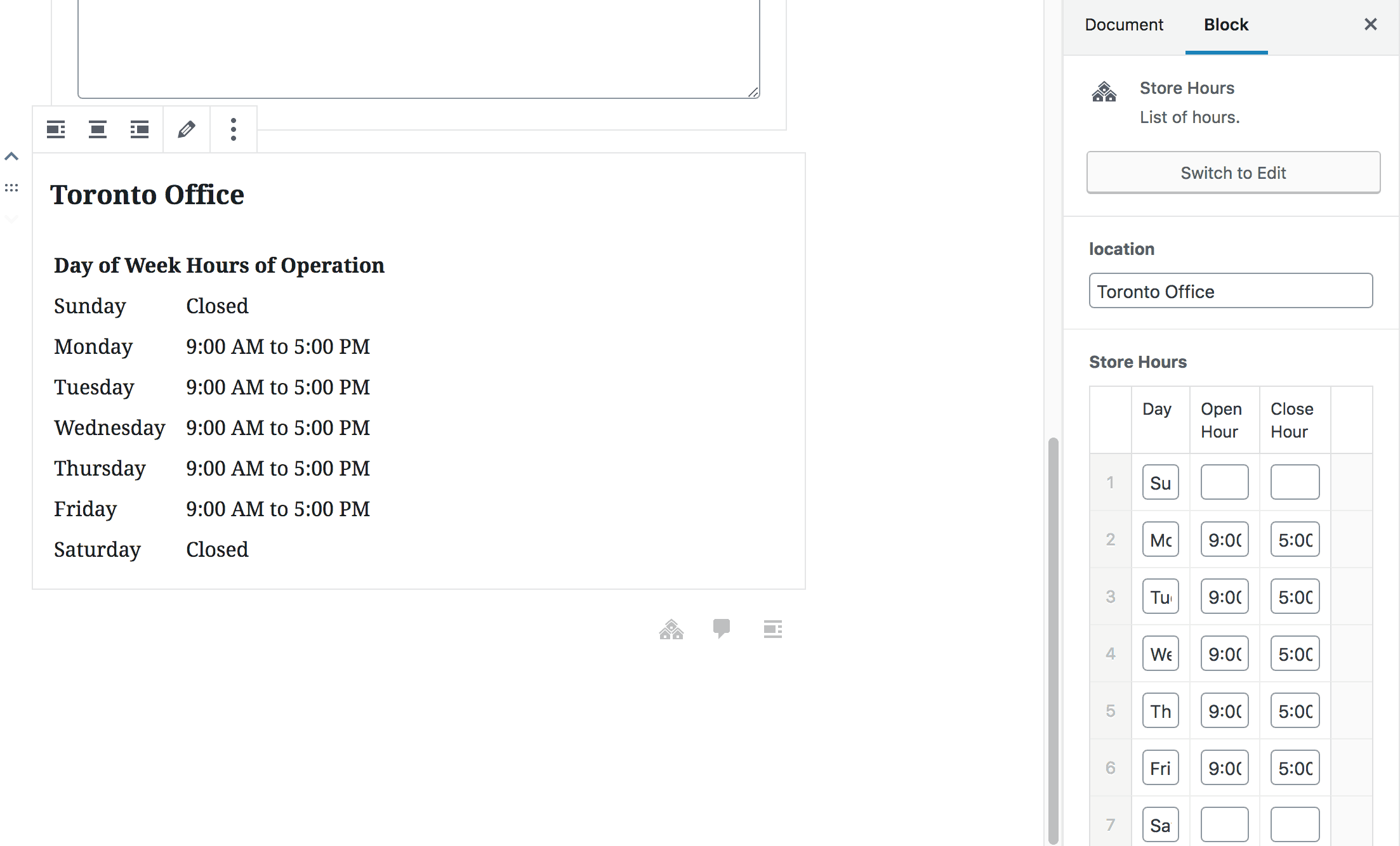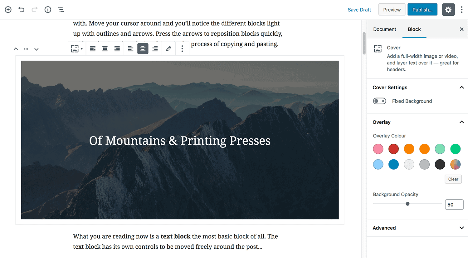 For visual users though, you’ll have the ability to set a couple new widths to your content so that you can toggle control if you want something to be full width or stay within the prescribed container that existed before. You’ll also have a new side panel that displays your familiar document options like Categories, Page Attributes, etc. in a vertical accordion, along with a tab for block specific attribute options.